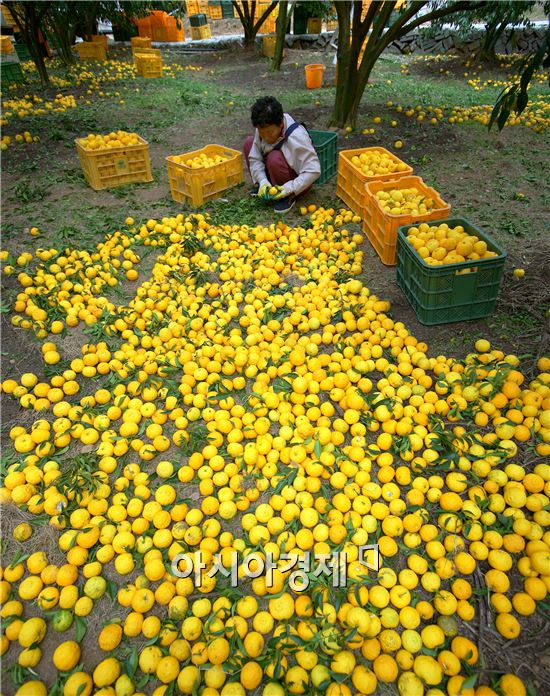 [아시아경제 노해섭 기자]전국 최대 유자 주산지인 고흥에서 유자 수확이 한창이다. 매년 11월이면 고흥에는 황금빛 유자향이 가득하고, 농가에서는 수확의 기쁨을 만끽하며, 유자가공업체는 수출용 유자차 주문생산 및 내수용 신제품을 기획 생산하느라 바빠서 고양이 손이라도 빌릴 참이다.총 재배면적 465ha에서 수확되는 올해 고흥산 유자는 유자과목 노령화 및 수세약화 등으로 생산량이 지난해보다 10%가 감소한 4천800여톤이 수확될 것으로 보인다. 고흥 유자는 예로부터 맛과 향이 뛰어남은 물론, 비타민C가 풍부해 건강에 좋은 것으로 밝혀지면서 남녀노소를 불문하고 누구나 애용할 수 있는 건강식품으로 사랑 받고 있다. 이를 잘 말해주듯이 향약대사전의 기록을 보면 유자는 말이 잘 안 나오는 증상, 가슴이 답답한 증상 등을 치료한다. 또 소화를 시키며 어류나 게 식중독 시 해독의 효능이 있다.본초강목의 기록을 보면 “유자껍질은 음식을 소화시키고 속을 좋게 한다. 나쁜 기를 흩어지게 하고 담을 없앤다”고 기록되어 있다고 한다.최근에는 동물 임상실험 결과 미항암작용이나 염증개선, 면역체계 강화, 피로회복 등에도 도움이 되는 것으로 밝혀져 단순한 기호식품이 아닌 기능성식품으로 입증되었고, 소비도 점차적으로 늘어나는 추세여서 한·중 FTA 등 농산물 수입개방 확대로 어려움에 처해있는 농민들에게 반가움을 주고 있다.전국 최대 유자 주산지인 고흥에서 유자 수확이 한창이다. <br />