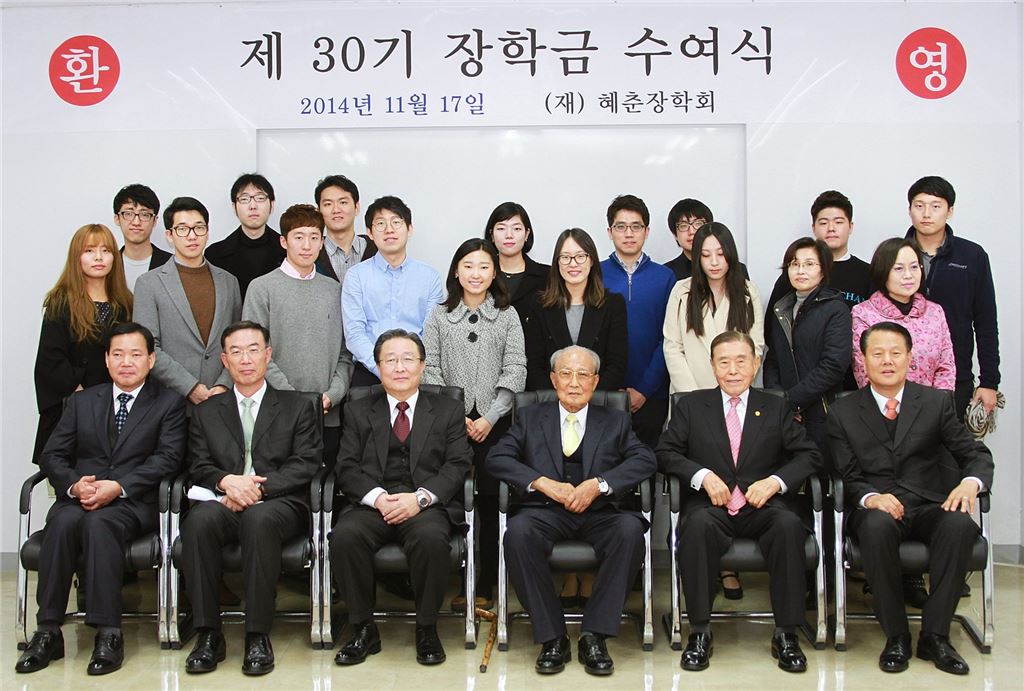 [아시아경제 이광호 기자] 정식품은 지난 17일 정식품 서울사무소에서 '제 30기 혜춘장학회 장학금 수여식'을 개최했다고 18일 밝혔다.올해로 30회째를 맞이한 혜춘장학회는 정식품의 창업자 정재원 명예회장이 유능한 인재를 양성해 국가발전에 기여하고 기업의 사회적 책임을 다 하려는 평소의 뜻을 실현하기 위해 설립한 장학재단이다. 정식품은 혜춘장학회를 통해 매년 어려운 가정형편에도 불구하고 우수한 학업성적을 유지하는 학생들의 꿈을 지원하고 있다.이번 제 30기 혜춘장학회 장학금 수여식에서 정식품은 17명의 대학생과 대학원생에게 총 5100만원의 장학금을 전달했다. 1984년 설립 이후 현재까지 혜춘장학회를 통해 장학금을 지급받은 학생은 총 2313명으로, 누계 금액은 약 20억원에 달한다.이날 장학금 수여식에 참석한 혜춘장학회 이사장이자 정식품 명예회장인 정재원 박사는 "미래의 희망인 우수한 학생들의 발전에 보탬이 되기 위해 시작한 혜춘장학회가 올해로 30년이 됐다"며 "장학금이 여러분이 이루고자 하는 꿈에 조금이나마 보탬이 돼 인류의 건강과 국가발전에 기여하는 훌륭한 인재가 되길 바란다"고 말했다.이광호 기자 kwang@asiae.co.kr<ⓒ세계를 보는 창 경제를 보는 눈, 아시아경제(www.asiae.co.kr) 무단전재 배포금지>