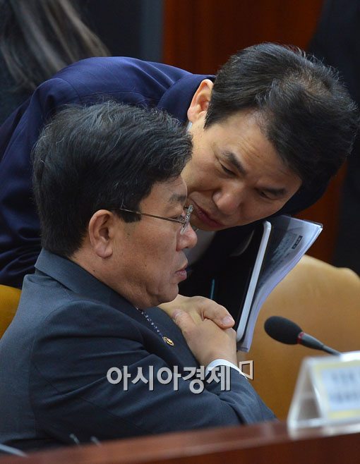 [아시아경제 백소아 기자] 윤상직 산업통상자원부 장관(왼쪽)과 정은보 기획재정부 차관보(오른쪽)이 19일 서울 세종로 정부서울청사에서 열린 경제관계장관회의에서 이야기를 하고 있다. 이 날 최경환 경제부총리는 경제활성화 법안이 정기국회내에 처리될 수 있도록 각 부처가 총력을 다해줄 것을 당부했다.백소아 기자 sharp2046@asiae.co.kr<ⓒ세계를 보는 창 경제를 보는 눈, 아시아경제(www.asiae.co.kr) 무단전재 배포금지>