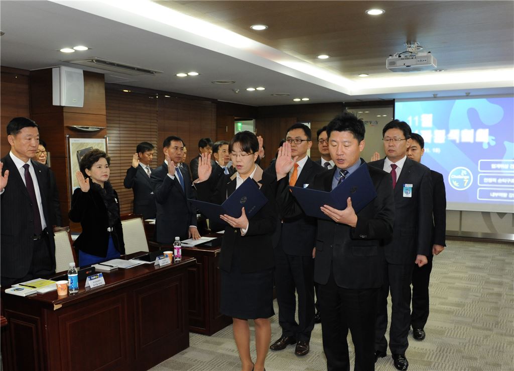 신한생명 임원, 부서장 등이 ‘개인정보보호 준법 서약식’에 참여하고 있다.