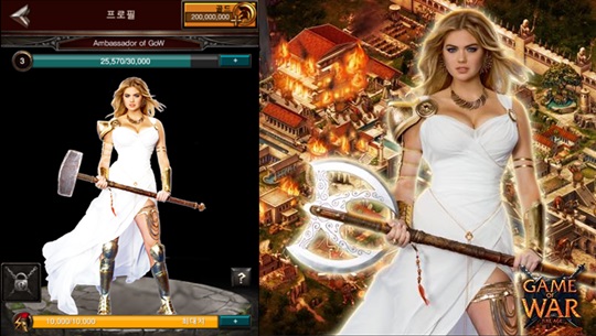케이트 업튼 아테나 코스튬 [사진=게임오브워 페이스북]