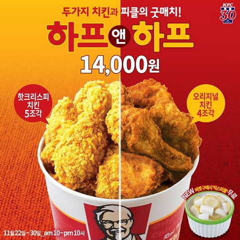KFC가 ‘하프앤하프’ 버켓을 1만4000원에 판매한다.
