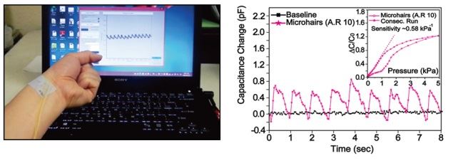 [아시아경제 정종오 기자]심혈관 질환을 진단할 수 있는 반창고 형태의 소자가 개발돼 관심을 모으고 있다. 간단한 방법으로 진단할 수 있어 효과적이다. 국내 연구팀이 미국 연구팀과 공동으로 목이나 손목에 부착해 응급한 심혈관 상태를 감지할 수 있는 반창고 형태의 소자를 개발했다. 이번에 개발한 소자는 곤충의 더듬이나 소장의 융털 같은 미세 섬모구조를 모사한 것이다. 고성능 음파측정 장비로만 잡아낼 수 있었던 미세맥파를 측정할 수 있다. 기존 고가의 삽입형 진단장비와 달리 손목이나 목 부위에 반창고처럼 붙이는 방식으로 불편함을 줄이고 비용을 낮춰 사전 심혈관 질환자 모니터링에 활용이 가능하다핵심은 미세한 생체신호를 증폭하기 위해 미세한 힘을 감지하는 곤충의 더듬이나 음식물을 흡수하는 소장의 융털에서 볼 수 있는 미세 섬모구조를 센서용 소자에 도입한 것이었다. 이러한 미세 섬모구조는 복잡한 굴곡이 있는 피부와의 접촉면적을 넓히는 데도 도움이 됐다. 연구팀은 인체의 맥박, 호흡은 물론 활동정보 등을 측정해 병리학적 진단과 생체신호 기반으로 하는 웨어러블(착용 가능한) 소자 기술에 적용할 수 있을 것으로 전망된다.개발된 센서는 피부에 부착된 상태에서 노동맥과 경정맥을 모니터링한 뒤 곧바로 피드백을 제공한다. 기존 혈압 측정기로 측정할 수 없는 미세한 목 부분의 경정맥파를 측정할 수 있어 더욱 주목받고 있다. 노동맥(RAP·Radial Artery Pulse)는 보통 맥박을 짚는 혈관으로 독특한 파형은 심혈관 질환의 임상정보와 관련이 있는 것으로 알려져 있다. 경정맥(JVP·Jugular Venous Pressure)은 뇌로부터 목 부위에 합류해 심장으로 되돌아가는 혈관으로 내경정맥파는 우심방, 우심실, 판막에 대한 심혈관 질환과 관련이 있다. 이번 제품은 성균관대 화학공학부 방창현 교수와 미국 스탠퍼드대학 제난 바오(Zhenan Bao) 교수가 주도한 이번 연구는 미래창조과학부가 추진하는 기초연구사업(신진 연구) 등의 지원으로 수행됐다. 연구결과는 재료과학 분야 국제학술지 어드밴스드 머티리얼즈(Advanced Materials)지 지난 10월30일자 온라인 판(논문명: Highly Skin-Conformal Microhairy Sensor for Pulse Signal Amplification)에 실렸다. 방 교수는 "기존의 스마트 웨어러블 소자를 경제적인 비용으로 비교적 간단한 형태로 제작해 위급한 심혈관 질환에 대응할 수 있다"며 "앞으로 맥파, 호흡과 활동 등의 생체의 물리적인 신호를 이용하는 신개념 정보기술(IT), 감성 공학, 로봇 기술 등의 다양한 분야에 활용될 수 있을 것으로 기대 된다"고 말했다.정종오 기자 ikokid@asiae.co.kr<ⓒ세계를 보는 창 경제를 보는 눈, 아시아경제(www.asiae.co.kr) 무단전재 배포금지>