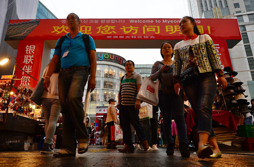 국경절을 맞아 방한한 중국인 관광객들이 명동 거리를 지나고 있다.
