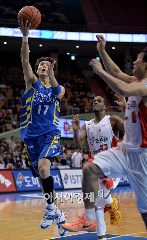 [아시아경제 김현민 기자] 프로농구 서울 삼성과 서울 SK의 경기가 26일 잠실실내체육관에서 열렸다. 삼성 이시준이 상대 헤인즈의 수비를 뚫고 슛하고 있다. 김현민 기자 kimhyun81@asiae.co.kr<ⓒ세계를 보는 창 경제를 보는 눈, 아시아경제(www.asiae.co.kr) 무단전재 배포금지>