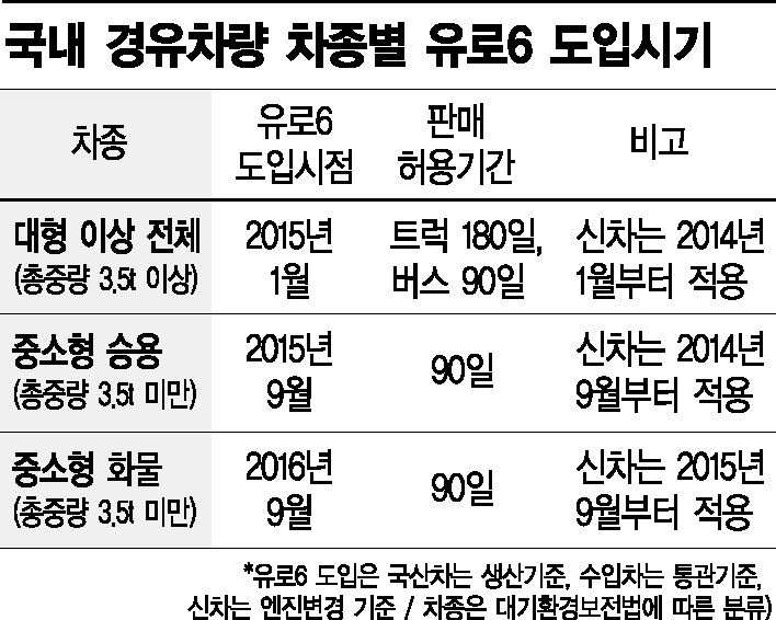 [아시아경제 최대열 기자]유럽발(發) 환경규제인 '유로6' 도입이 한달여 앞으로 다가오면서 내년 이후 국내 자동차시장에 적잖은 변화가 예상된다. '환경을 위한다'는, 누구도 감히 거스를 수 없는 흐름에서 비롯됐으나 당초 취지했던 바와 달리 단기적으로 환경에 더 큰 부담이 될 수 있다는 우려가 나온다.정부도 내년 이후 제도안착을 위해 지원책을 늘리려는 움직임을 보이고 있다. 그러나 실제 정책의 이해당사자가 체감할 수 있는 보완책을 통해 혼선을 줄이고 제도의 원래 취지를 살려야 한다고 전문가들은 지적했다.◆유로6가 뭐길래 = 유로6는 디젤엔진 차량이 배출하는 가스에 대해 일정 수준을 넘지 못하게 한 규제로 유럽에서는 이미 올해부터 도입됐다. 기존 유로5에 비해 질소산화물을 80%, 미세먼지는 60% 정도 줄여야 한다.앞서 유로4에서 유로5로 넘어갈 때만 해도 질소산화물을 43% 정도 줄이면 됐지만 이번 유로6는 기준을 대폭 강화했다. 지난 9월부터 출시된 일부 차종별 신차에 우선 적용됐으며 내년 1월부터는 국내에서 생산되거나 해외에서 들여오는 3.5t 이상 디젤차량이 대상이다.이후 내년 9월부터 3.5t 미만의 중소형 승용차, 2016년 9월부터는 3.5t 미만 중소형 화물차까지 적용대상이 확대, 전 디젤차량이 해당된다. 신차의 경우 해당 시기에 앞서 1년 전부터 적용된다. 올 하반기 출시된 그랜저 디젤이나 신형 쏘렌토ㆍ카니발 등이 유로6를 충족시키는 것도 신차인 까닭에 한발 앞서 유로6를 충족해야하기 때문이다.환경부가 관할하는 대기환경보전법에 따라 적용됐기에 배기량이나 크기가 아닌 총중량에 따라 적용시점을 달리 했다. 유로6가 적용되더라도 적용 시점 이전에 생산된 차량에 한해 차종에 따라 최저 90일에서 최고 180일까지 판매 유예 기간을 뒀다. 올해 말에 생산된 유로5 기준의 대형 트럭이나 버스라도 내년 3월까지는 판매가 가능하다는 얘기다.디젤엔진 차량의 배출가스 규제법별도 후처리 부품 장착해 가격부담폐차시점 늦춰 환경에 부담갈수도◆무엇이 바뀌나…차값 1000만원 이상 오를듯 = 당장 내년에 유로6를 충족해야하는 대형 트럭이나 버스는 엔진을 개선하고 선택적 촉매환원장치나 디젤분진필터와 같은 별도의 후처리 부품을 장착해야 해 1000만~1500만원 정도 차값이 오를 것으로 완성차 업계에서는 보고 있다.국내 상용차업체도 이미 연구개발에 수천억원을 투자했으며 후처리부품도 대당 수백만원대다. 한발 앞서 제도를 도입한 유럽에서는 주요 대형 트랙터(컨테이너 운송 등을 위한 차량) 대당 평균판매가격이 1만2000유로(한화 1600만원) 정도 인상됐다.폴크스바겐그룹 산하 만트럭의 TGS 18.440 모델은 10만9100유로에서 12만1100유로로, 다임러 악트로스 1851 모델은 13만1080유로에서 14만3750유로로 1만2670유로 올랐다. 업체별로 차이는 있으나 일부 상용차업체는 엔진개발에만 1조원 넘게 쓴 것으로 알려졌다.◆"폐차시점 늦춰 환경에 더 큰 부담될 것"= 문제는 차값 인상에 따라 신차 구입을 미루고 기존 차량을 더 오래 타는 운전자가 많아질 가능성이 높다는 점이다. 현대차 마이티(트럭)나 카운티(버스), 자일대우버스 등 내년부터 적용되는 3.5t 이상 차량 가운데 상대적으로 가격대가 낮은 차종의 경우 대표적인 서민운수업자용 차량으로 꼽힌다.일반적으로 화물차나 특수차량 소유주는 차를 오랜 기간 타는 경향이 강한데 이 같은 점을 더 부추긴다는 것이다. 한국자동차산업협회에 따르면 국내 등록된 전체 차량 2000만대 가운데 15년 이상된 차는 10%에 조금 못 미치는 수준이다.그러나 화물차는 차령(車齡)이 15년 이상 된 경우가 전체의 17%, 특수차는 23%에 달한다. 버스는 차령이 9~11년으로 제한돼 있어 일정 시간이 지난 후 의무적으로 교체해야하나 화물차는 차령제한이 따로 없다.환경을 위해 유로6를 도입하는데 정작 새 차를 사지 않고 오래된 차를 계속 끌고 다니는 탓에 환경에 더 큰 부담을 주게 되는 것이다. 업계 한 관계자는 "과거 기준인 유로3 수준의 가스를 배출하는 차량이 버젓이 돌아다니고 있는데 본인만 수백, 수천만원 비용부담이 늘어나는 게 부당하다고 느끼지 않겠느냐"고 말했다.현재 정부가 경유차의 배출가스를 줄이기 위해 진행하고 있는 사업으로는 후처리 부품을 부착하는 걸 지원하거나 디젤차량을 LPG차량으로 교체해주는 사업, 조기폐차지원제도 등이 있다. 이 가운데 조기폐차지원제도의 경우 현재 중고차가격의 80% 정도를 지원받을 수 있는데 내년부터 이 비중이 90% 수준으로 확대된다.국회에서 논의중인 내년도 예산안이 확정되면 대형 경유차에 대한 폐차지원금은 354억원에서 554억원으로 늘어날 전망이다. 박연재 환경부 교통환경과장은 "6t 이상 상용차 차주라면 폐차 후 고철비까지 더해 1000만원 정도 상환받을 수 있을 것"이라고 설명했다.그러나 이 같은 지원책을 받는 대상이 제한적인 만큼 향후 제도안착을 위해 정부가 더 적극적으로 나서야 한다고 전문가들은 지적한다. 김필수 대림대 자동차학과 교수는 "유로6로 인해 서민층의 비용부담이 갑작스레 급증한다면 제도의 애초 취지도 못 살리면서 일부 중산층은 생활기반이 무너질 우려도 