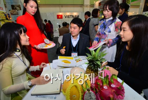 11월 12일부터 15일까지 서울 코엑스에서 열린 서울국제식품산업전의 베트남 부스에서 상담이 이뤄지고 있다.