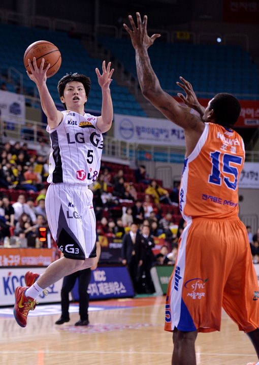 [인천=아시아경제 김현민 기자] 프로농구 인천 전자랜드와 창원 LG의 경기가 27일 인천 삼산월드체육관에서 열렸다. LG 김시래가 상대 포웰의 수비를 뚫고 슛하고 있다.