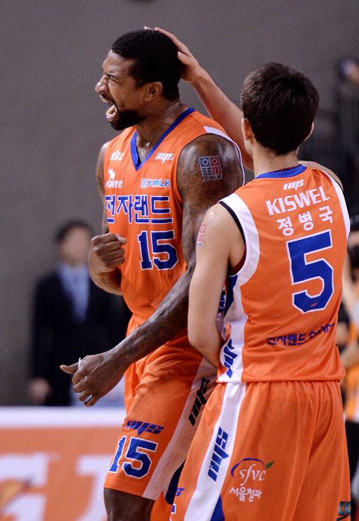 [인천=아시아경제 김현민 기자] 프로농구 인천 전자랜드와 창원 LG의 경기가 27일 인천 삼산월드체육관에서 열렸다. 전자랜드 포웰이 상대 김종규을 앞에 두고 호쾌한 덩크슛을 성공시키고 환호하고 있다. 김현민 기자 kimhyun81@asiae.co.kr<ⓒ세계를 보는 창 경제를 보는 눈, 아시아경제(www.asiae.co.kr) 무단전재 배포금지>