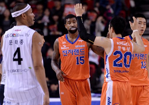 [인천=아시아경제 김현민 기자] 프로농구 인천 전자랜드와 창원 LG의 경기가 27일 인천 삼산월드체육관에서 열렸다. 78-74로 이기며 5연승을 기록한 전자랜드 포웰이 정영삼과 기뻐하고 있다. 김현민 기자 kimhyun81@asiae.co.kr<ⓒ세계를 보는 창 경제를 보는 눈, 아시아경제(www.asiae.co.kr) 무단전재 배포금지>