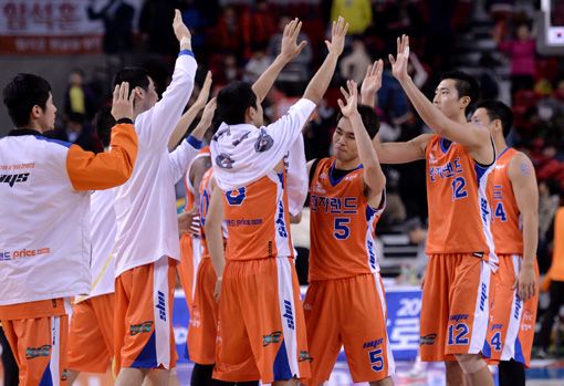[포토]'5연승' 전자랜드, '모두 손 머리 위로'