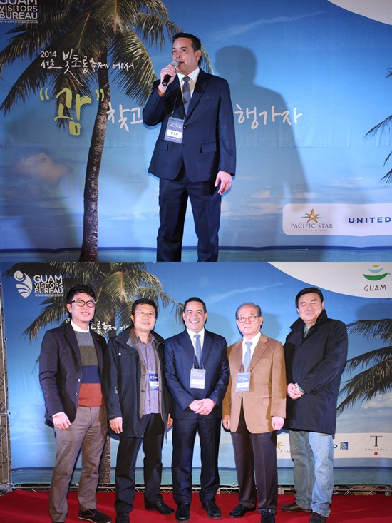 (왼쪽부터)파인트리 이명진 대표, 박재호 총감독, 칼 판길리난 괌관광청장, 장병학 위원장, 이헌수 괌한국사무소장