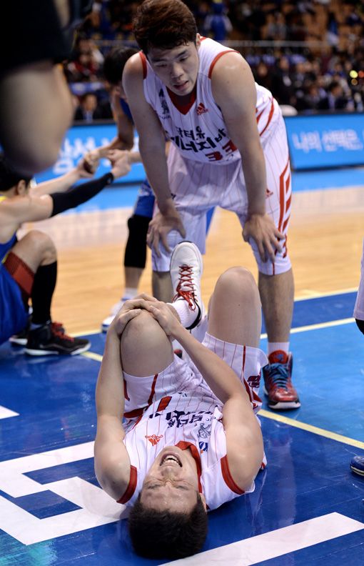 [아시아경제 김현민 기자] 프로농구 서울 삼성과 고양 오리온스의 경기가 28일 잠실실내체육관에서 열렸다. 오리온스 김강선이 코트에 쓰러져 고통을 호소하고 있다. 김현민 기자 kimhyun81@asiae.co.kr<ⓒ세계를 보는 창 경제를 보는 눈, 아시아경제(www.asiae.co.kr) 무단전재 배포금지>