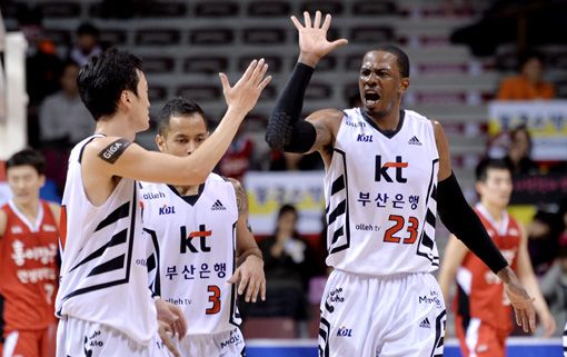 [안양=아시아경제 김현민 기자] 프로농구 안양 KGC와 부산 KT의 경기가 30일 안양실내체육관에서 열렸다. KT 로드가 덩크슛을 성공시키고 동료들과 기뻐하고 있다. 김현민 기자 kimhyun81@asiae.co.kr<ⓒ세계를 보는 창 경제를 보는 눈, 아시아경제(www.asiae.co.kr) 무단전재 배포금지>