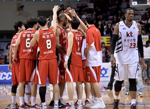 [안양=아시아경제 김현민 기자] 프로농구 안양 KGC와 부산 KT의 경기가 30일 안양실내체육관에서 열렸다. 84-82로 올시즌 KT전 첫 승을 거둔 KGC 선수들이 기뻐하고 있다. 김현민 기자 kimhyun81@asiae.co.kr<ⓒ세계를 보는 창 경제를 보는 눈, 아시아경제(www.asiae.co.kr) 무단전재 배포금지>
