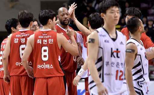 [안양=아시아경제 김현민 기자] 프로농구 안양 KGC와 부산 KT의 경기가 30일 안양실내체육관에서 열렸다. 84-82로 올시즌 KT전 첫 승을 거둔 KGC 선수들이 기뻐하고 있다. 김현민 기자 kimhyun81@asiae.co.kr<ⓒ세계를 보는 창 경제를 보는 눈, 아시아경제(www.asiae.co.kr) 무단전재 배포금지>