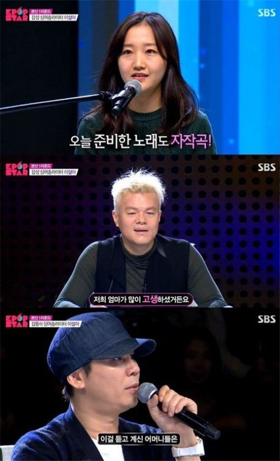 이설아, 자작곡 '엄마로 산다는 것은'으로 심사위원 올킬[아시아경제 온라인이슈팀] 'K팝스타4'의 출연자 이설아의 자작곡 '엄마로 산다는 것은'이 이목을 집중시켰다. 지난달 30일 방송된 SBS 예능 'K팝스타4'에서는 본선 1라운드 두 번째 이야기를 다뤘다. 이설아는 앞서 'K팝스타3' 출연했지만 등급테스트에 떨어져 재도전한 사연을 밝히며 자신의 자작곡인 '엄마로 산다는 것은'을 선보였다. 양현석은 "곡이 평가할 수 있는 기준을 넘어선 거 같다"며 "듣고 계신 어머니들은 눈물 많이 흘리실 거 같다"고 평가했다 이어 "어머니를 다시 회상하게 해줘서 감사하다"면서 "평가할 수 있는 기준을 넘어섰다"고 덧붙였다.유희열은 "이런 곡 들고 나오면 반칙이다"라며 "곡이 정말 좋고 나는 이 가사가 정말 좋다"고 말했다. 이어 "곡에 어울리는 멜로디가 나와서 평가를 내리고 싶지 않은 노래였다"면서 "곡에 대해서는 '참 잘했어요'를 누르고 싶다"며 "멋 안 부리고 이런 목소리로 담백하게 가사를 전달하는 여성 뮤지션은 없다"고 극찬했다.박진영 역시 "이설아씨 곡은 혼자 끼적인 것 같은 느낌이다"면서 "그게 사람들한테 확 와닿는다"며 합격을 줬다.소식을 접한 누리꾼은 "K팝스타4 이설아, 대박이다" "K팝스타4 이설아, 자작곡 쩖" "K팝스타4 이설아, 강력한 우승 후보다" "K팝스타4 이설아, 싱어송라이터네" "K팝스타4 이설아, 진정한 뮤지션" 등의 반응을 보였다.온라인이슈팀 issue@asiae.co.kr<ⓒ세계를 보는 창 경제를 보는 눈, 아시아경제(www.asiae.co.kr) 무단전재 배포금지>
