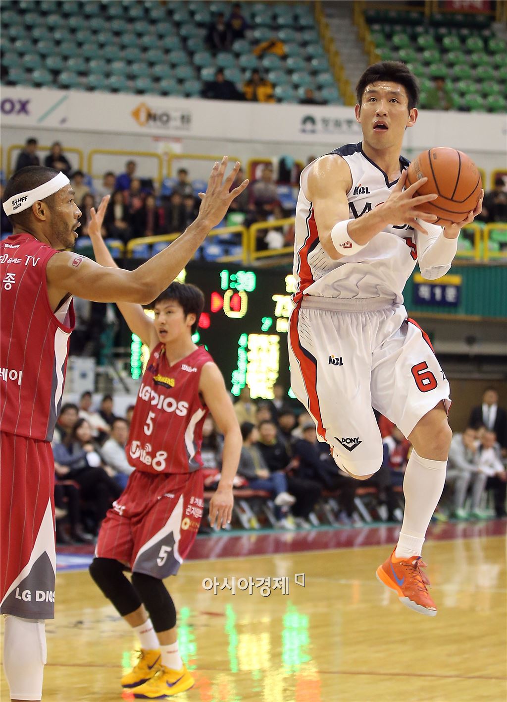[아시아경제 이종길 기자]울산 모비스가 다시 독주 분위기를 탔다. 창원실내체육관에서 1일 열린 2014-2015 KCC 프로농구 정규리그 경기에서 창원 LG를 85-77로 이겼다. 시즌 열일곱 번째 승리(4패)로 2위 서울 SK(15승5패)와 승차를 1.5경기로 벌렸다. 지난달 29일 인천 전자랜드와 경기 분패(74-77)로 가라앉은 팀 분위기도 함께 끌어올렸다. 반면 LG는 시즌 열세 번째 패배(8승)로 공동 7위에서 8위로 내려갔다. 패인은 양동근 봉쇄 실패. 특히 3쿼터 중반 연속 점수를 허용, 점수 차가 14점(48-62)까지 벌어졌다. LG는 4쿼터 초반 모비스의 실책을 틈타 추격했다. 김영환의 외곽포를 시작으로 데이본 제퍼슨이 연속 8득점했다. 그러나 이내 배수용과 양동근에게 거듭 점수를 내줘 사실상 승기를 놓쳤다. 모비스는 양동근이 36분47초 동안 24득점 4리바운드 3도움으로 활약했다. 리카르도 라틀리프(22득점 13리바운드)와 아이라 클라크(11득점 10리바운드)도 더블더블을 뽐내며 승리에 힘을 보탰다. LG는 제퍼슨이 28득점 8리바운드, 문태종이 20득점으로 분전했지만 오른 발목을 다친 김종규의 공백을 메우지 못했다. 크리스 메시의 부진(7득점 2리바운드) 속에 리바운드 경쟁에서 18-40으로 밀렸다.이종길 기자 leemean@asiae.co.kr<ⓒ세계를 보는 창 경제를 보는 눈, 아시아경제(www.asiae.co.kr) 무단전재 배포금지>