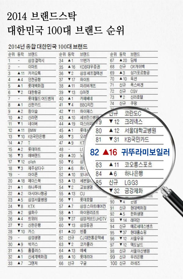 귀뚜라미보일러, 2014년 대한민국 100대 브랜드 선정