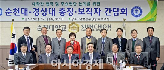 순천대학교(총장 송영무)는 지난 3일 국립 경상대학교(총장 권순기)와 총장 및 본부 보직자 초청 간담회를 개최했다.<br />