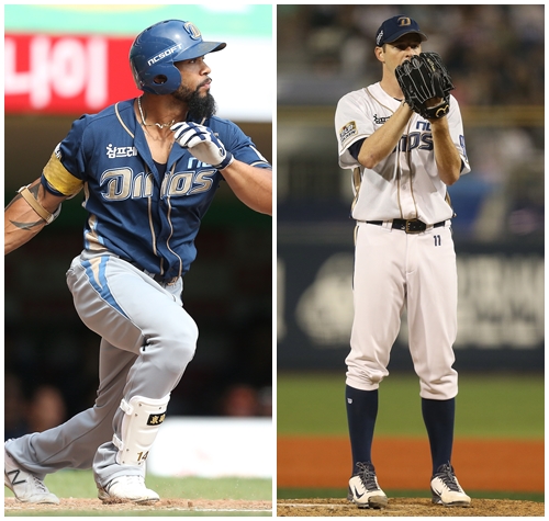 프로야구 NC의 외국인선수 에릭 테임즈(왼쪽)와 찰리 쉬렉[사진 제공=NC 다이노스]