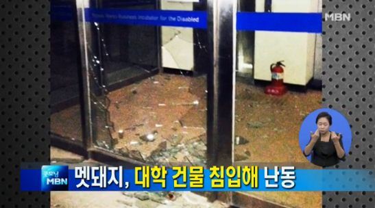 멧돼지, 대학 건물 침입해 난동 [사진=MBN 방송 캡쳐]