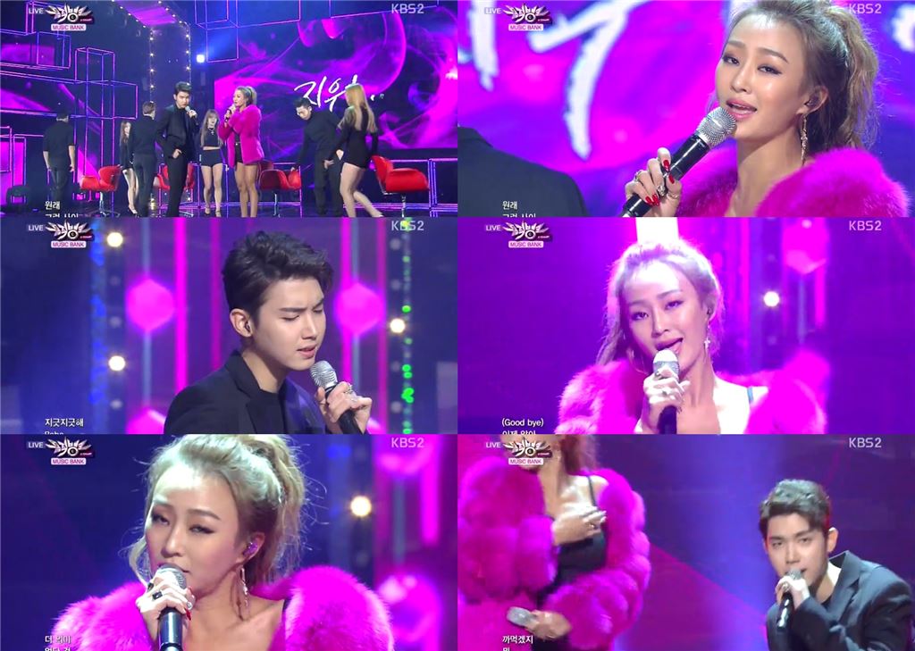 [아시아경제 유수경 기자]효린X주영이 감미로운 무대로 객석을 사로잡았다. 특히 효린은 물 오른 미모로 놀라움을 선사했다.효린X주영은 5일 오후 방송된 KBS2 '뮤직뱅크'에 출연해 '지워'를 선사했다. 두 사람은 카리스마 넘치는 표정으로 무대에 올라 특유의 쓸쓸하고 애잔한 감성을 드러냈다. 이날 효린은 검정 나시에 핫핑크 퍼 코트를 매치, 섹시미를 한껏 끌어올렸다. 앞머리를 넘겨 뒤로 높이 묶은 헤어스타일도 잘 어울렸다는 평. 두 사람은 완벽한 퍼포먼스와 안정적인 라이브 실력으로 감탄을 자아냈다.효린X주영의 '지워'는 가볍게 만나고 헤어지는 요즘 남녀의 쿨한 이별스토리를 그린 감성적인 곡이다. 두 사람의 섹시한 매력이 가득한 재즈 알앤비 트랙으로 대중들의 많은 사랑을 받고 있다. 한편, 이날 '뮤직뱅크'에는 인피니트F, 효린, 주영, 에이핑크, 니콜, AOA, 버즈, EXID, 소년공화국, 헬로비너스, 임창정, 러블리즈, GOT7, 마마무, 헤일로, 순정소년, 세발까마귀, 예리밴드, 아토믹키즈가 출연했다. 유수경 기자 uu84@asiae.co.kr<ⓒ아시아경제 & 스투닷컴(stoo.com)이 만드는 온오프라인 연예뉴스>
