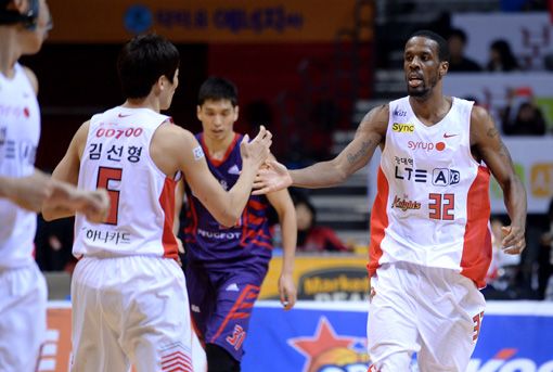[고양=아시아경제 김현민 기자] 프로농구 고양 오리온스와 서울 SK의 경기가 7일 고양체육관에서 열렸다. SK 헤인즈가 득점에 성공한 뒤 어시스트한 김선형과 하이파이브하고 있다. 김현민 기자 kimhyun81@asiae.co.kr<ⓒ세계를 보는 창 경제를 보는 눈, 아시아경제(www.asiae.co.kr) 무단전재 배포금지>