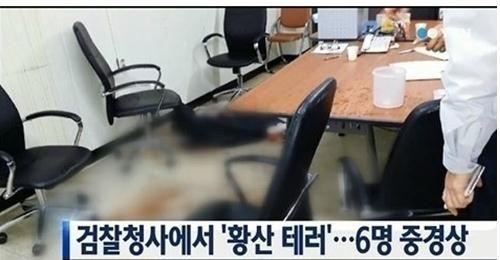 대학교수가 검찰청사서 '황산 테러' [사진=SBS 뉴스 캡쳐]