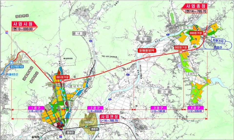 [아시아경제(수원)=이영규 기자] 서울지하철 4호선 당고개역과 남양주시 진접을 연결하는 진접선 복선전철 공사가 10일 시작된다. 9일 경기도에 따르면 진접선 복선전철 기공식이 10일 오후 3시 서승환 국토교통부장관, 박기춘 국회의원, 강영일 한국철도시설공단 이사장, 박수영 경기도행정1부지사, 이석우 남양주시장과 지역주민 500여명이 참석한 가운데 남양주시 진접읍 내각리에 위치한 내곡대교 인근에서 개최된다. 진접선 복선전철은 서울지하철 4호선 당고개역과 남양주시 별내 신도시, 오남, 진접 등 3개 역을 연결하는 14.8km 구간의 철도로 2019년 개통 예정이다. 총 공사비는 1조3322억원이 들어가며 본선구간 공사비 9269억원 중 75%인 7222억원은 국비로, 25%는 지방비다. 지방비 부담비율을 보면 경기도와 남양주시가 2086억 원, 서울시가 321억원이다. 진접선 복선전철이 완공되면 진접~당고개를 15분만에 이동할 수 있다. 1일 평균 3만5000여명이 이 노선을 이용할 것으로 전망된다. 도는 진접선 개통으로 남양주시 별내, 오남, 진접 등 대규모 택지개발 주변 지역의 교통체증 해소는 물론 경기북부지역 균형발전에도 도움이 될 것으로 기대하고 있다.이영규 기자 fortune@asiae.co.kr<ⓒ세계를 보는 창 경제를 보는 눈, 아시아경제(www.asiae.co.kr) 무단전재 배포금지>이영규 기자 fortune@asiae.co.kr<ⓒ아시아 대표 석간 '아시아경제' (www.newsva.co.kr) 무단전재 배포금지>