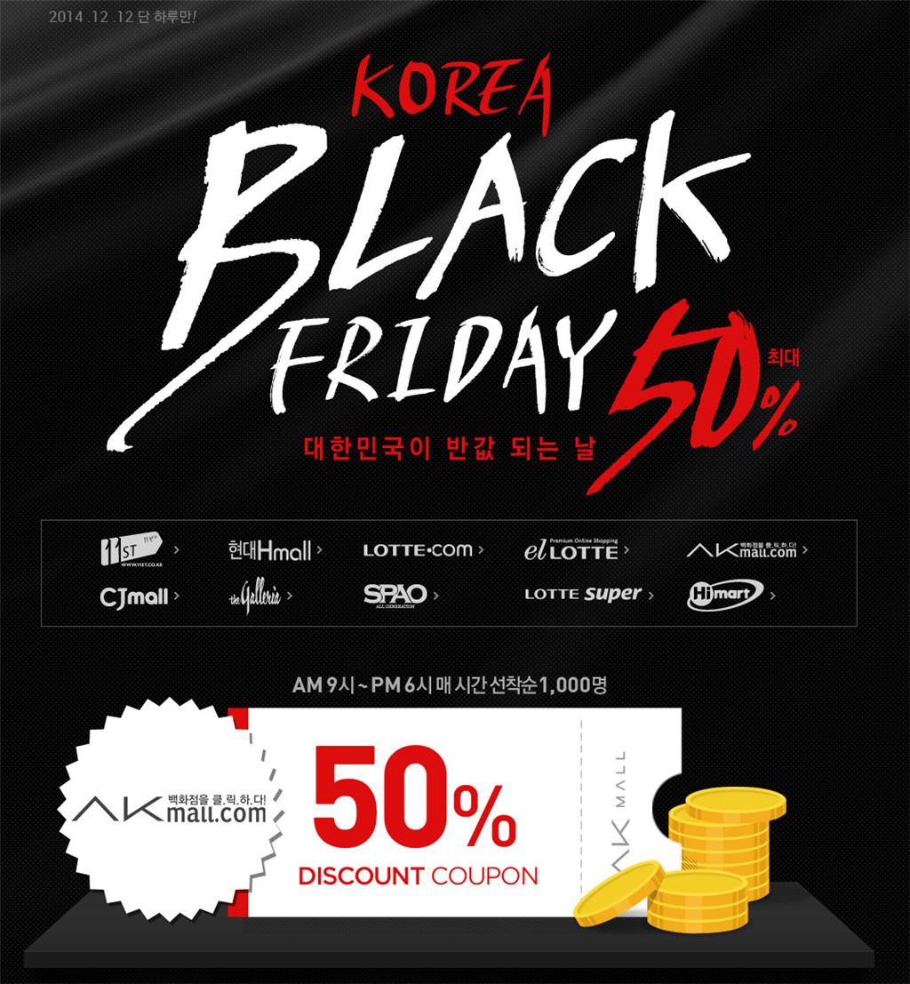 [아시아경제 김소연 기자] 온라인쇼핑몰 AK몰은 오는 12월12일 토종 유통업체 10곳이 동시에 진행하는 ‘코리아 블랙프라이데이’ 행사에 참여한다고 9일 밝혔다. 단 하루 동안 50% 할인쿠폰을 발급하고 50% 할인 특가상품을 선보이는 등 다양한 이벤트도 진행한다.오전 9시부터 오후 6시까지 매시 정각마다 선착순 1000명씩 총 1만명에게 50% 할인쿠폰을 제공한다. 단, 할인쿠폰은 ID당 1회 발급 가능하다. 또 적립금 페이백 이벤트를 통해 10만원 이상 구매고객을 대상으로 선착순 100명에게 구매금액의 50%(최고 5만원)를 적립금으로 돌려준다.대표적인 50% 특가상품으로 K2 헤비다운점퍼를 23만7600원에, 존바바토스 아티산 향수(75ml)를 4만1000원에, 베어파우 조니 어그부츠를 3만9000원에, 캘빈클라인 남녀 장갑을 2만5500원에, 쇼트즈위젤 와인·샴페인잔 세트(2p)를 1만5900원에 판매한다. 이 밖에도 페라가모 여성 장지갑을 26만4120원에, 버버리 여성 숄더백을 49만5000원에, 락피쉬 롱 패딩부츠를 8만9000원에, 레스포색 몰리 가방을 1만1900원에 판매하는 등 30~80%까지 단독특가 상품을 선보인다.KB국민카드로 5만원 이상 구매시 10%(최고 2만원) 청구할인 혜택과 최고 10% 중복할인쿠폰을 제공한다. 현대카드로 구매시 결제금액의 50%까지 M포인트로 결제 가능하며 10% 전용할인쿠폰을 제공한다. 김소연 기자 nicksy@asiae.co.kr<ⓒ세계를 보는 창 경제를 보는 눈, 아시아경제(www.asiae.co.kr) 무단전재 배포금지>