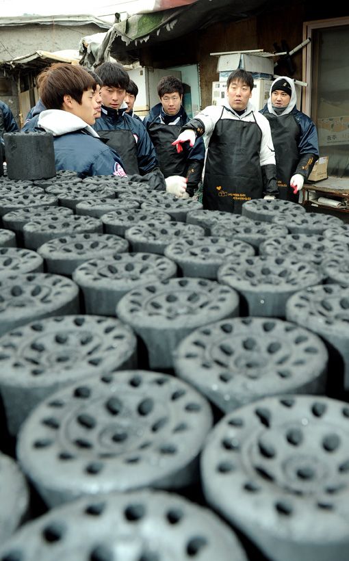 [아시아경제 김현민 기자] 프로야구 두산 베어스가 10일 서울 강남구 개포동 구룡마을에서 사랑의 연탄 나누기 봉사활동을 실시했다. 두산 김현수를 비롯한 선수단이 연탄을 나르고 있다. 김현민 기자 kimhyun81@asiae.co.kr<ⓒ세계를 보는 창 경제를 보는 눈, 아시아경제(www.asiae.co.kr) 무단전재 배포금지>