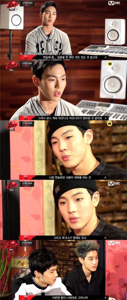 [아시아경제 장용준 기자]'노머시' 셔누가 JYP엔터테인먼트(이하 JYP) 연습생 생활에서 정리가 된 경험을 고백했다.10일 방송한 케이블채널 Mnet '노머시(No Mercy)' 첫 회에서는 스타쉽엔터테인먼트 12명의 연습생들이 1차 데뷔미션을 앞두고 각기 다른 심정으로 미션에 임하는 모습이 그려졌다. 이날 셔누는 JYP에서 연습생 생활을 하다 뜻하지 않게 정리가 됐던 경험을 밝혔다. 셔누는 "사실 회사 입장에서도 바람이 있었을 거다. 연습에 집중을 못했던 것도 있는 거 같다"고 말했다. 이어 "그러다 보니 계속 어긋나게 되고 결국은 정리됐다"며 "그렇다고 꿈을 포기할 순 없었다. 이효리 선배님 댄서도 하면서 꿈을 계속 이어갔다"고 전했다. 이후 셔누는 JYP 연습생 시절 인연을 쌓았던 그룹 갓세븐(GOT7) 멤버들을 만나 식사를 하며 이야기를 나눴다. 셔누는 함께 연습하던 친구들이 먼저 데뷔를 한 것에 대해 "이미 너무 많이 봐왔다. 미스에이도 그렇고, B.A.P 영재도 그렇고, 효린 누나도 그렇다"며 씁쓸한 기색을 내비췄다. 그러자 갓세븐 멤버 제이비(JB)는 "그러니까 이번엔 형이 나와야죠"라고 응원해 훈훈한 모습을 보였다. 한편 '노머시'는 씨스타, 케이윌, 정기고, 매드클라운, 보이프렌드, 주영 등 최고 아티스트를 보유한 레이블인 스타쉽에서 선보이는 신인 힙합 보이그룹의 최종 멤버를 가리기 위한 서바이벌 프로그램이다. 라이머, 산이, 기리보이, 천재노창 등 최강의 래퍼, 프로듀서들과 콜라보 미션을 선보여 서바이벌 사상 가장 화려한 미션이 펼쳐질 것으로 예고된 바 있다. 매주 수요일 오후 11시에 방송한다. 장용준 기자 zelra@asiae.co.kr<ⓒ아시아경제 & 스투닷컴(stoo.com)이 만드는 온오프라인 연예뉴스>