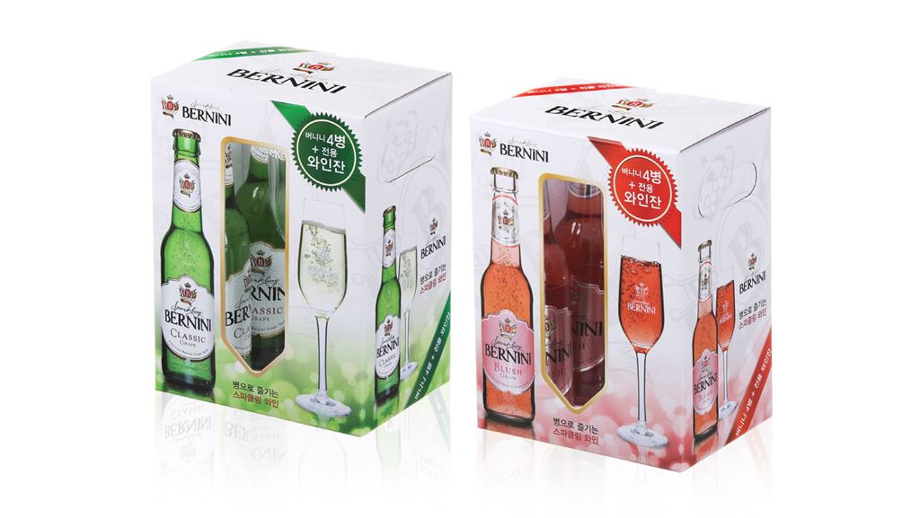 인덜지가 스파클링 와인 버니니와 전용잔을 세트로 구성한 기획 패키지 2종을 선보였다.