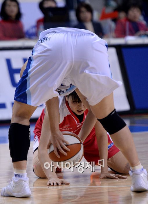 [용인=아시아경제 김현민 기자] 2014-2015 여자프로농구 삼성과 KDB생명의 경기가 12일 용인실내체육관에서 열렸다. KDB생명 김소담이 상대 수비에게 볼을 빼앗기고 있다.김현민 기자 kimhyun81@asiae.co.kr<ⓒ세계를 보는 창 경제를 보는 눈, 아시아경제(www.asiae.co.kr) 무단전재 배포금지>