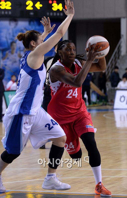 [용인=아시아경제 김현민 기자] 2014-2015 여자프로농구 삼성과 KDB생명의 경기가 12일 용인실내체육관에서 열렸다. KDB생명 하지스가 상대 배혜윤의 수비를 뚫고 공격하고 있다.김현민 기자 kimhyun81@asiae.co.kr<ⓒ세계를 보는 창 경제를 보는 눈, 아시아경제(www.asiae.co.kr) 무단전재 배포금지>
