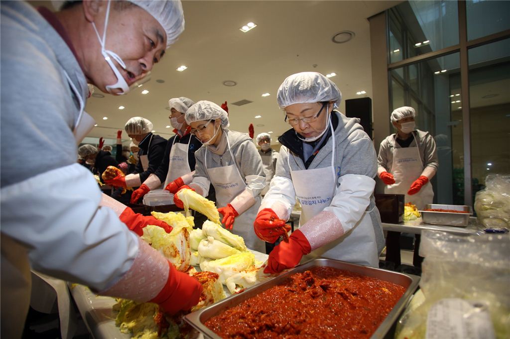 [아시아경제 박종일 기자] 신연희 강남구청장은 13일 오전 10시 강남구 오토웨이 타워 지하에서 현대자동차 동호회원, 새마을부녀회원 등 300여명 자원 봉사자와 함께 사랑의 김장을 담갔다.이 날 담근 4000kg의 김장은 강남구내 어려운 이웃들에게 골고루 전달될 예정이다.박종일 기자 dream@asiae.co.kr<ⓒ세계를 보는 창 경제를 보는 눈, 아시아경제(www.asiae.co.kr) 무단전재 배포금지>