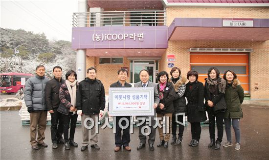 "협동과 나눔 실천하는 iCOOP생협 3년 연속 구례군에 성품 전달"[아시아경제 이진택 기자]전남 구례군 용방농공단지에 입주해 일자리 창출과 지역경제 활성화에 큰 기여를 하고 있는 iCOOP생협사업연합회(이사장 신복수)가 어려운 이웃을 위해 훈훈한 인정을 펼쳤다.사회공헌활동을 위해 2010년 12월에 설립된 공익법인 iCOOP씨앗재단은 불경기 속에서도 연말연시를 맞아 16일에 관내 저소득가정에 전달해 달라며 2,000만 원 상당의 친환경 쌀 670포/8㎏을 구례군(군수 서기동)에 지정 기탁했다.오항식 iCOOP생협 경영이사는 “iCOOP생협은 안전한 먹거리만 공급하는 곳이 아니라 지역주민이 도움을 필요로 할 때 스스럼없이 찾을 수 있는 곳이 될 수 있도록 '희망 2015 나눔 캠페인'에 참여하게 됐다”며 “앞으로도 지역민과 함께하는 협동조합의 이념을 실천하기 위해 기업의 이윤을 지역에 환원하는 등 사회공헌 활동을 지속해 나갈 것”이라고 밝혔다.서기동 구례군수는 “어려운 이웃을 위해 나눔의 뜻을 전해주신 iCOOP씨앗재단에 군민 모두의 마음을 담아 감사드린다”며 “이번 성품 기탁을 계기로 훈훈한 사랑이 이어져 많은 분에게 희망을 전할 수 있는 기부 문화가 확산되기를 기대한다”고 전했다.한편, iCOOP씨앗재단은 2012년부터 매년 지역사회와 함께하기 위해 장학금, 물품 기탁을 해왔다. 특히, 지난 7월에는 지역주민의 보건의료서비스 향상을 위해 구례군과 '산부인과 개설과 운영 지원에 관한 협약'」을 체결하고 구례군 보건의료원에 산부인과 개설 운영자금 2억 원을 매년 지원하기로 했다. 이진택 기자 <ⓒ세계를 보는 창 경제를 보는 눈, 아시아경제(www.asiae.co.kr) 무단전재 배포금지>