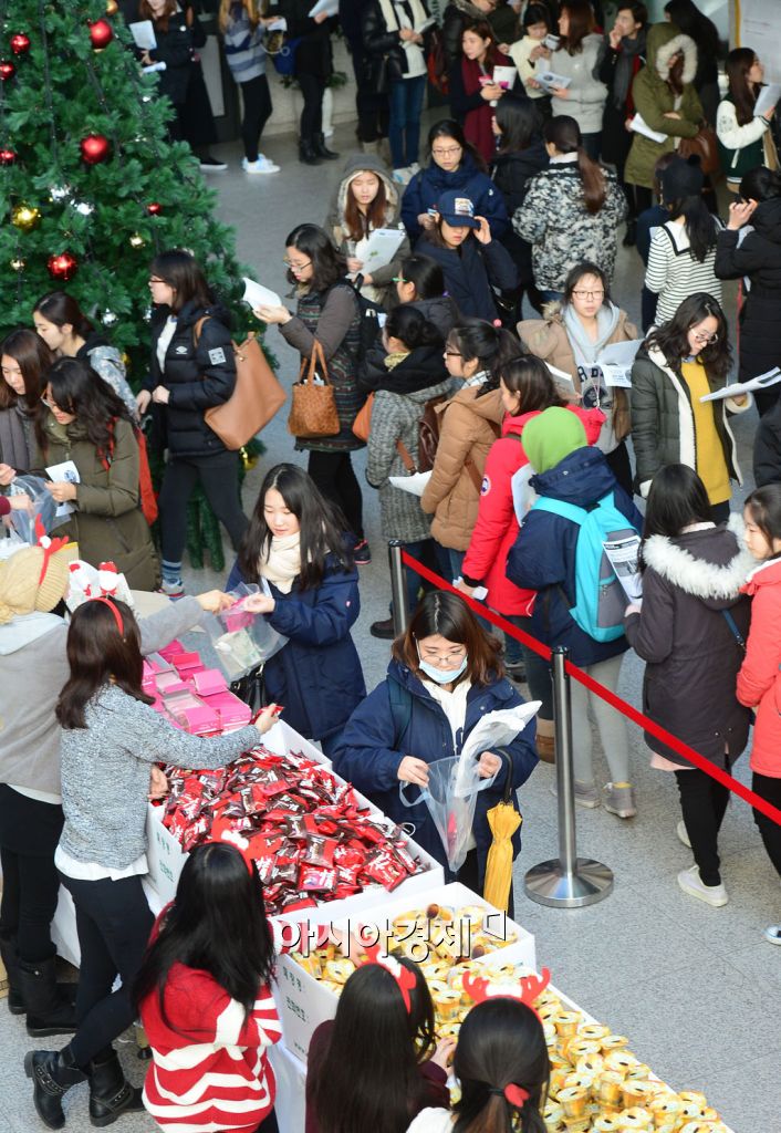 [아시아경제 백소아 기자] 16일 서울 서대문구 이화여자대학교에서 열린 '맛있는 이화사랑'행사에서 기말고사를 앞둔 학생들이 간식을 받고 있다. 이화여대는 기말고사를 준비하는 재학생들을 격려하기 위해 이번 행사를 개최했다.백소아 기자 sharp2046@asiae.co.kr<ⓒ세계를 보는 창 경제를 보는 눈, 아시아경제(www.asiae.co.kr) 무단전재 배포금지>