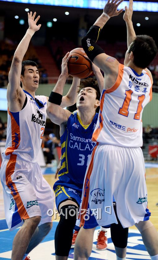 [아시아경제 김현민 기자] 프로농구 서울 삼성과 인천 전자랜드의 경기가 16일 잠실실내체육관에서 열렸다. 삼성 김준일이 상대 함준후와 이정제의 수비를 뚫고 공격하고 있다. 김현민 기자 kimhyun81@asiae.co.kr<ⓒ세계를 보는 창 경제를 보는 눈, 아시아경제(www.asiae.co.kr) 무단전재 배포금지>