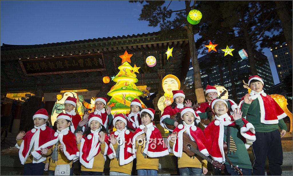 [아시아경제 윤동주 기자] 크리스마스를 앞두고 17일 서울 종로구 조계사 앞에서 열린 크리스마스트리 점등식에서 산타 복장을 입은 아이들이 '메리 크리스마스'를 외치고 있다.윤동주 기자 doso7@asiae.co.kr<ⓒ세계를 보는 창 경제를 보는 눈, 아시아경제(www.asiae.co.kr) 무단전재 배포금지>