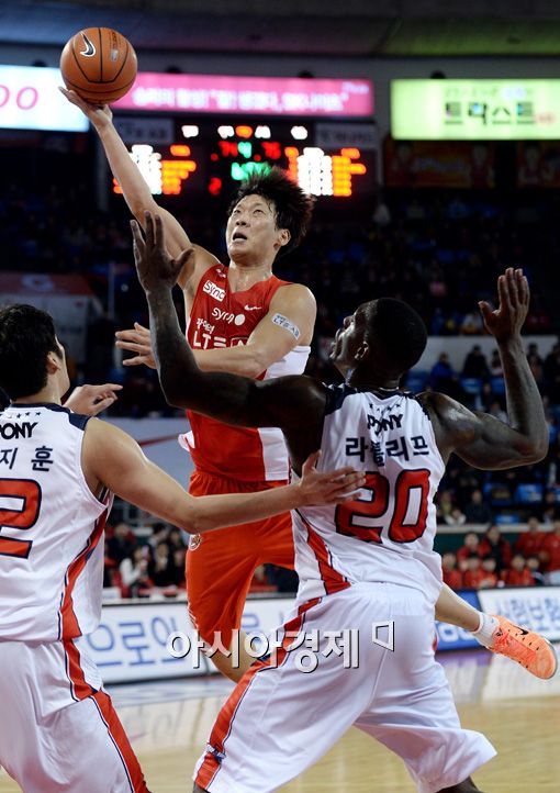 [아시아경제 김현민 기자] 프로농구 서울 SK와 울산 모비스의 경기가 17일 잠실학생체육관에서 열렸다. SK 박상오가 상대 라틀리프의 수비를 뚫고 공격하고 있다. 김현민 기자 kimhyun81@asiae.co.kr<ⓒ세계를 보는 창 경제를 보는 눈, 아시아경제(www.asiae.co.kr) 무단전재 배포금지>