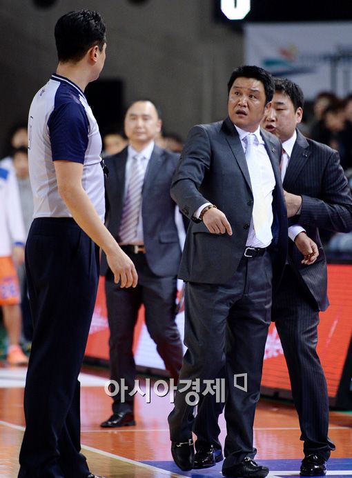 [인천=아시아경제 김현민 기자] 프로농구 인천 전자랜드와 부산 KT의 경기가 18일 인천 삼산월드체육관에서 열렸다. 전자랜드 유도훈 감독이 심판에 어필하고 있다.