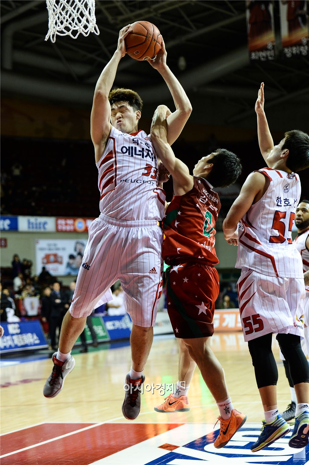 [아시아경제 이종길 기자]고양 오리온스가 연장 끝에 값진 승리를 챙겼다. 안양실내체육관에서 21일 열린 2014-2015 KCC 프로농구 정규리그 경기에서 안양 KGC인삼공사를 99-91로 이겼다. 시즌 열여섯 번째 승리(13패)로 5위 인천 전자랜드(13승14패)와 승차를 두 경기로 벌리며 4위를 고수했다. 반면 KGC는 열여섯 번째 패배(12승)로 부산 KT에 공동 6위를 허용했다. 전반을 51-44로 앞섰지만 후반 집중력을 잃으며 자멸했다. 특히 4쿼터 종료 1분여 전이 그랬다. 강병현과 리온 윌리엄스의 자유투로 86-86 동점을 만들고 양희종의 가로막기로 다시 공격권을 얻었지만 박찬희가 성급하게 미들슛을 던졌다. 오리온스는 바로 리바운드를 잡았지만 이내 박찬희에게 볼을 뺏겼다. 하지만 1대3의 수적 열세에도 트로이 길렌워터가 리온 윌리엄스의 골밑슛을 저지해 승부를 연장으로 끌고 갔다. 그 뒤 경기는 급격히 오리온스로 기울었다. 이승현이 자유투 두 개를 모두 넣었고, 이현민이 영리하게 레이업슛을 성공시켰다. 이승현이 종료 2분30초를 남기고 3점슛까지 꽂아 순식간에 점수 차를 일곱 점(93-86)으로 벌렸다. KGC는 윌리엄스의 미들슛과 강병현의 3점슛으로 뒤늦게 추격에 나섰지만 바로 길렌워터에게 손쉬운 골밑슛을 내줘 2연승에 실패했다. 오리온스는 찰스 가르시아가 32득점 9리바운드로 공격을 주도했다. 이승현은 19득점 7리바운드, 장재석은 20득점 10리바운드로 힘을 보탰다. 임재현도 3점슛 세 개 포함 13득점으로 제 몫을 했다. KGC는 최현민과 애런 맥기가 나란히 16점씩을 기록했지만 4쿼터 후반부터 고집한 3점슛이 계속 불발됐다. 스물여섯 개를 던져 열일곱 개를 놓쳤다. 반면 오리온스는 열여덟 개를 던져 열한 개를 넣었다.심판 판정에 어필하는 김주성(가운데)[사진=KBL 제공]