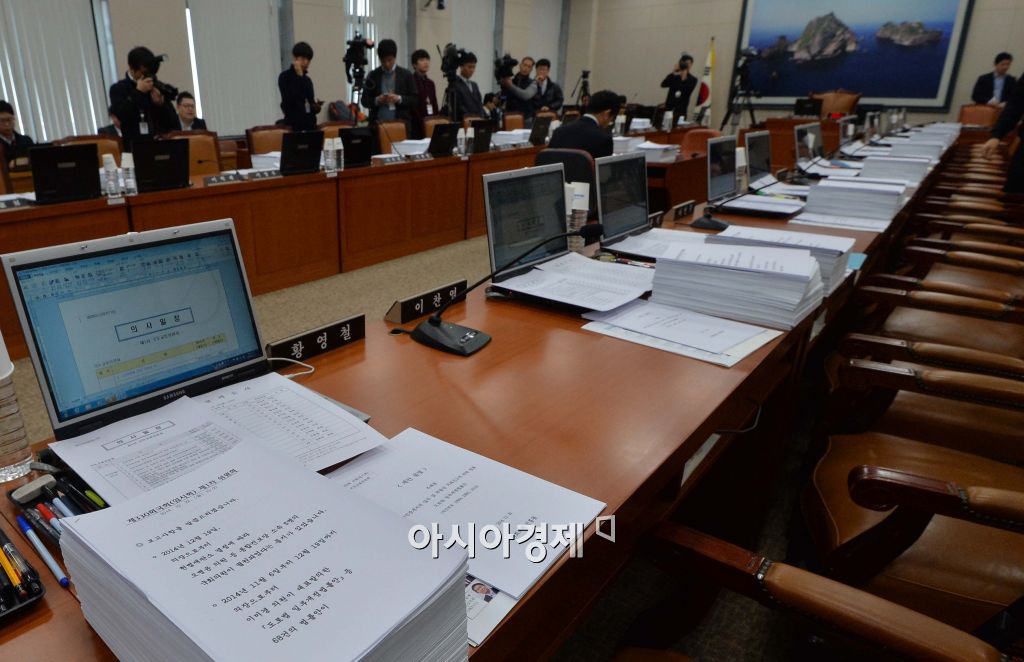 [아시아경제 최우창 기자] 22일 최근 논란이 된 대한항공 땅콩회항 사건으로 국회에서 국토교통위 전체회의가 열린 가운데 최근 통합진보당 해산 명령 및 의원 박탈로 인해 오병윤 통합진보당 의원 자리가 비어져 있다.최우창 기자 smicer@asiae.co.kr<ⓒ세계를 보는 창 경제를 보는 눈, 아시아경제(www.asiae.co.kr) 무단전재 배포금지>