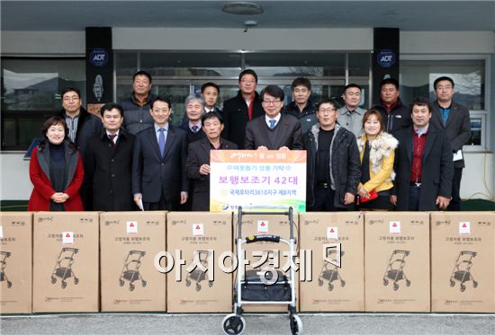 국제로타리 3610지구 제8지역(대표 전정철)은 지난 19일 거동이 불편한 지역의 어르신들을 위한 보행보조기 42대를 장흥군(군수 김성)에 기탁했다.