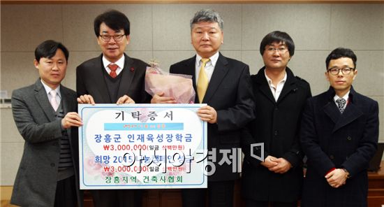 장흥건축사협회는 연말을 맞아 22일에 관내 어려운 조손가정을 지원하기 위해 사회복지공동모금회를 통한 지정기탁 300만원과 우수인재 발굴해 지원하기 위한 인재육성장학금 300만원을 쾌척했다.