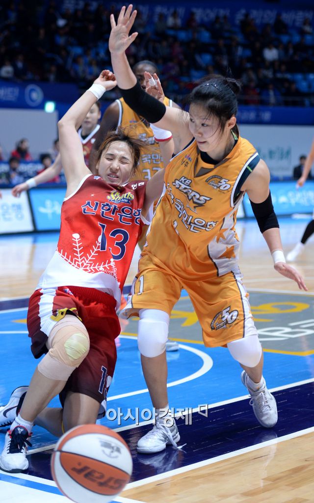[인천=아시아경제 김현민 기자] 여자 프로농구 신한은행과 KB국민은행의 경기가 22일 인천 도원체육관에서 열렸다. 신한은행 김단비가 상대 홍아란과 치열한 볼다툼을 벌이고 있다. 김현민 기자 kimhyun81@asiae.co.kr<ⓒ세계를 보는 창 경제를 보는 눈, 아시아경제(www.asiae.co.kr) 무단전재 배포금지>