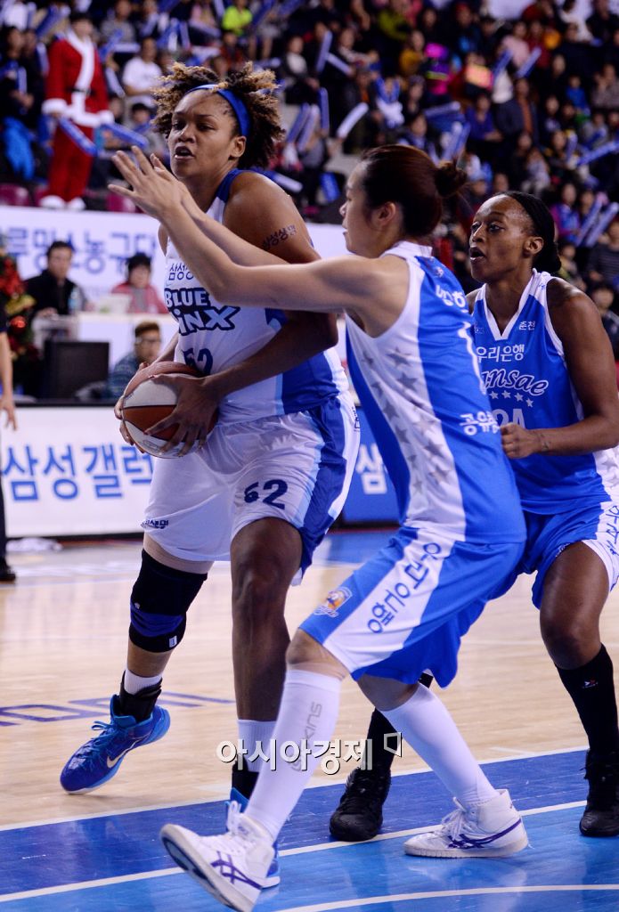 [용인=아시아경제 김현민 기자] 여자 프로농구 삼성과 우리은행의 경기가 24일 용인실내체육관에서 열렸다. 삼성 켈리가 상대 양지희의 수비를 뚫고 공격하고 있다. 개막 후 15연승으로 역대 개막 최다 연승 타이를 기록 중인 우리은행은 종전 기록을 보유한 삼성을 상대로 신기록을 수립할 수 있을지 주목된다. 김현민 기자 kimhyun81@asiae.co.kr<ⓒ세계를 보는 창 경제를 보는 눈, 아시아경제(www.asiae.co.kr) 무단전재 배포금지>