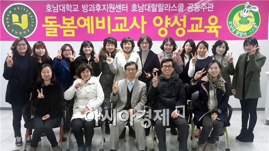 호남대랄랄라스쿨(대표 정영기)과 호남대 방과후돌봄지원센터는 돌봄예비교사 양성교육 수료식을 가졌다. <br />